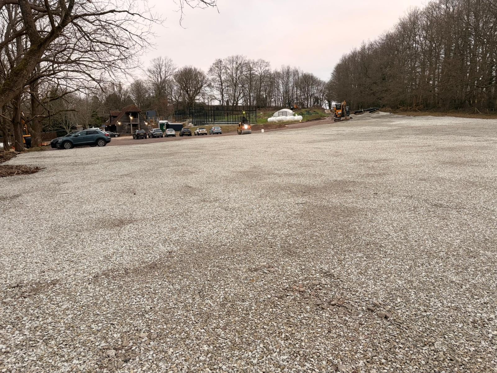 Excavation, formation, and gravel build-up delivered a hard-wearing car park for heavy use.