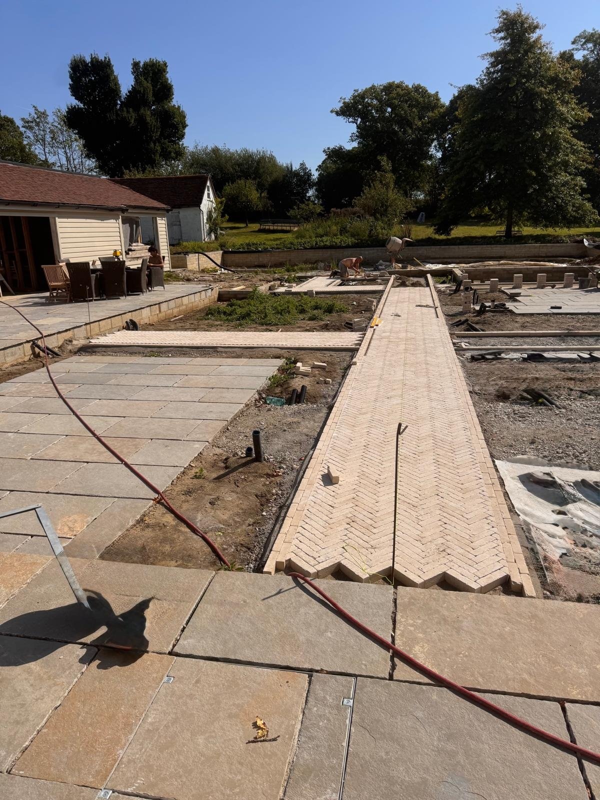 Ground preparation was key to keeping the surfaces level and resistant to movement for herringbone sections.