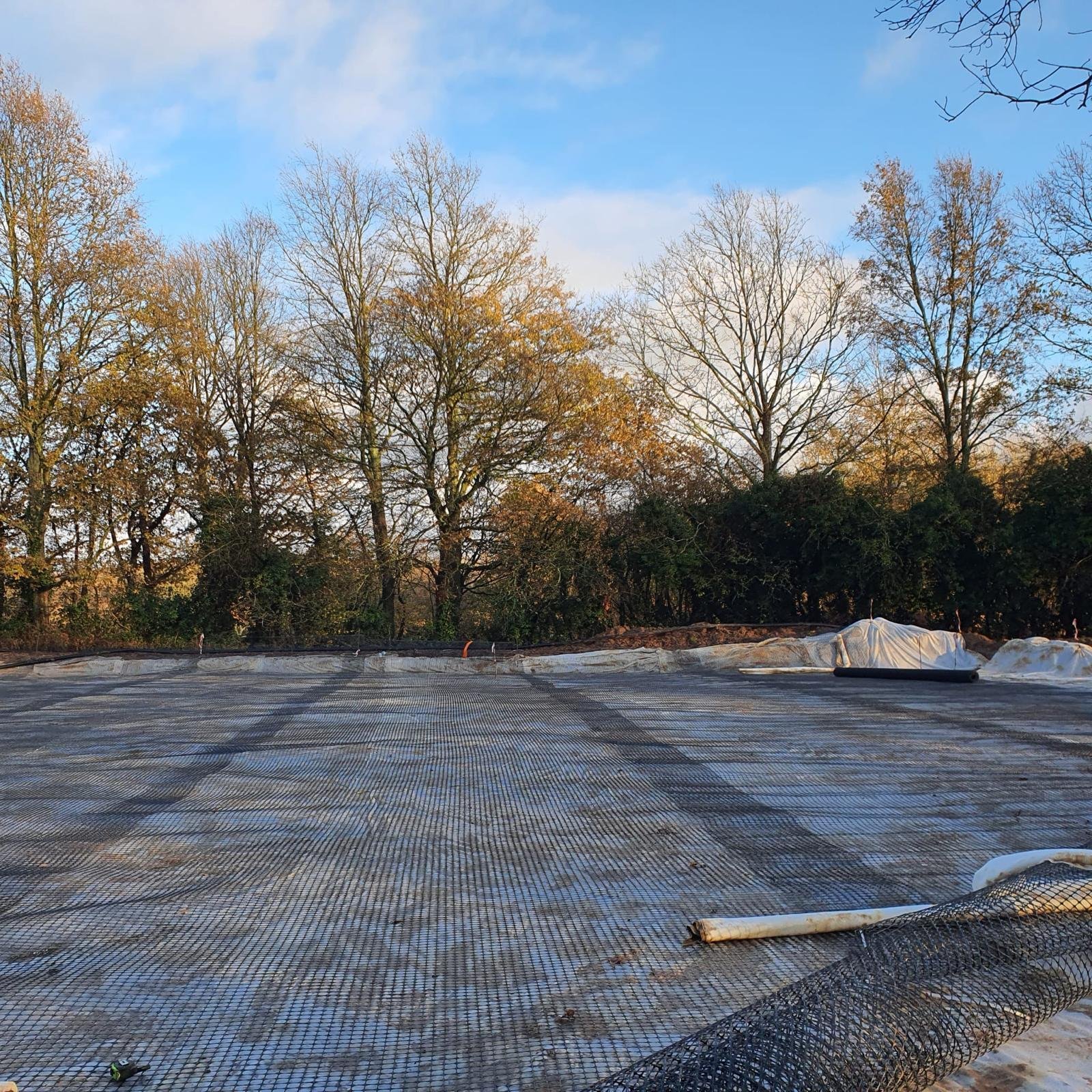 Geotextile and sub-base installation improve load bearing and reduce future movement.